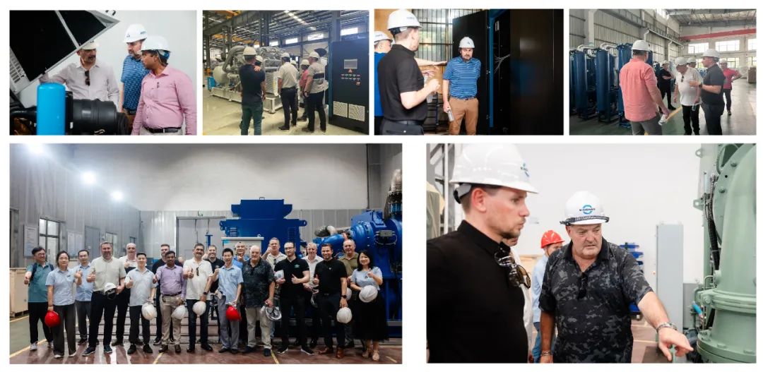 客人們除了參觀工廠、車間和生產(chǎn)線外,更多地聚焦產(chǎn)品,他們冒著酷暑長時間地逗留在離心機(jī)車間,對開山研制的離心壓縮機(jī)表現(xiàn)出特別的關(guān)注,仔細(xì)察看離心機(jī)局部細(xì)節(jié)。在出口車間,客人們長時間徘徊在小型柴油引擎移動式空壓機(jī)和25bar、35bar高壓移動式空氣機(jī)這些中東市場的熱銷產(chǎn)品旁,以致于參觀時間一再延長。