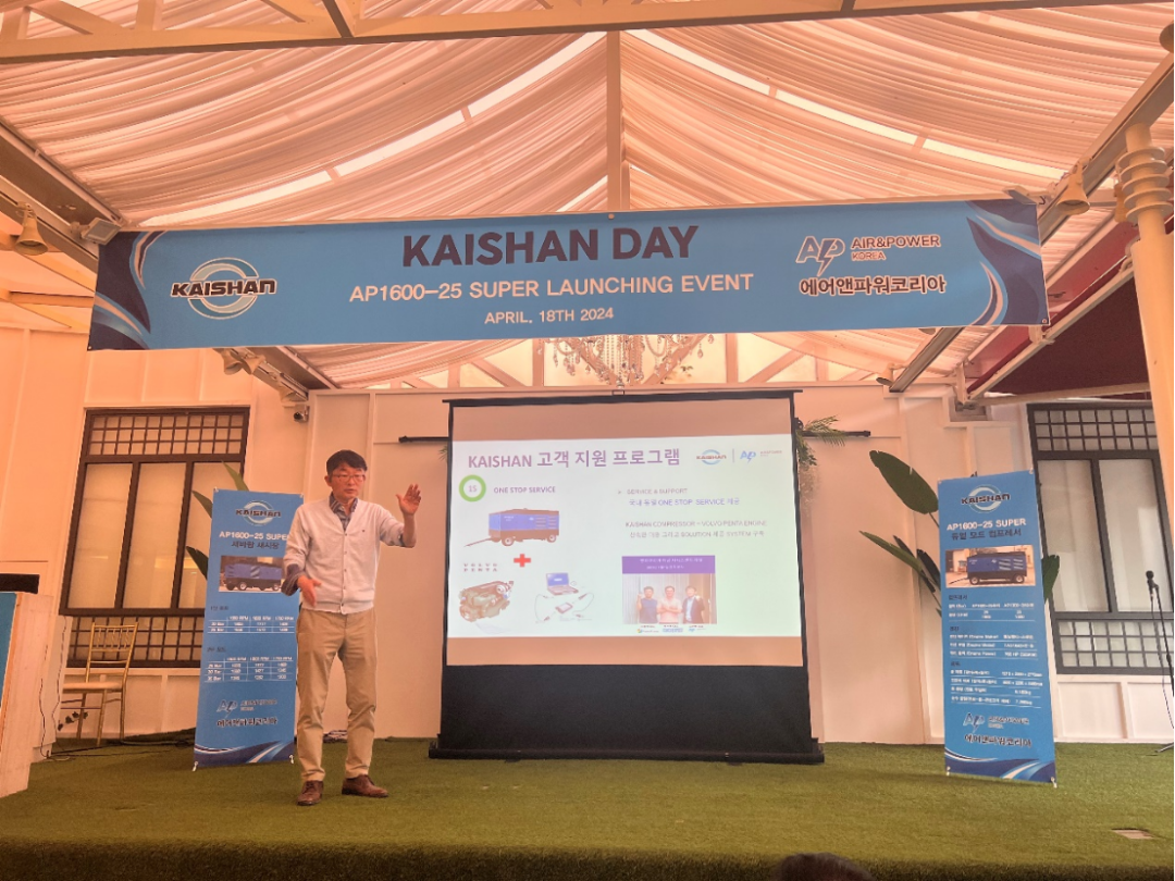 A&P公司總經(jīng)理Mr.Koh Kwanhyun主持了活動,并專題報告、介紹了開山集團,向韓國客戶介紹了開山強大的研發(fā)實力,說明了開山移動空氣壓縮機的性能和技術(shù)特點。來自基礎(chǔ)建設(shè)、樁基應用、地熱鉆井、水井鉆井、礦山市場的100余位客戶認真聆聽了Mr.Koh的講解。
