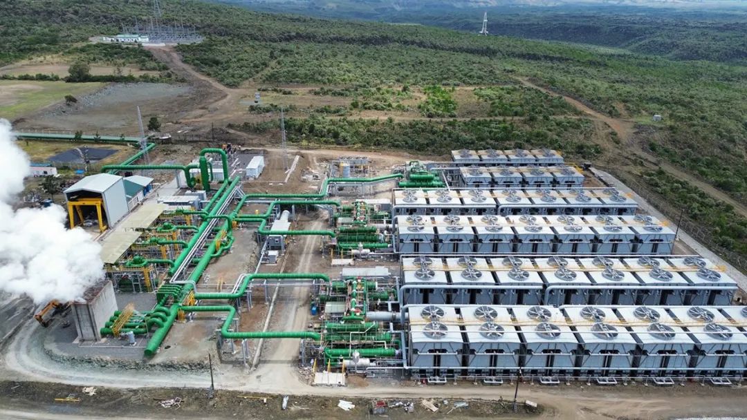 35 MWe 的 Sosian Menengai 地?zé)岚l(fā)電廠于 2023 年 8 月投入使用。該電廠使用兩臺開山地?zé)嵴羝磯郝輻U膨脹機(jī),將廢氣排放到三個有機(jī)朗肯循環(huán)裝置中。圖片來源:開山集團(tuán)
