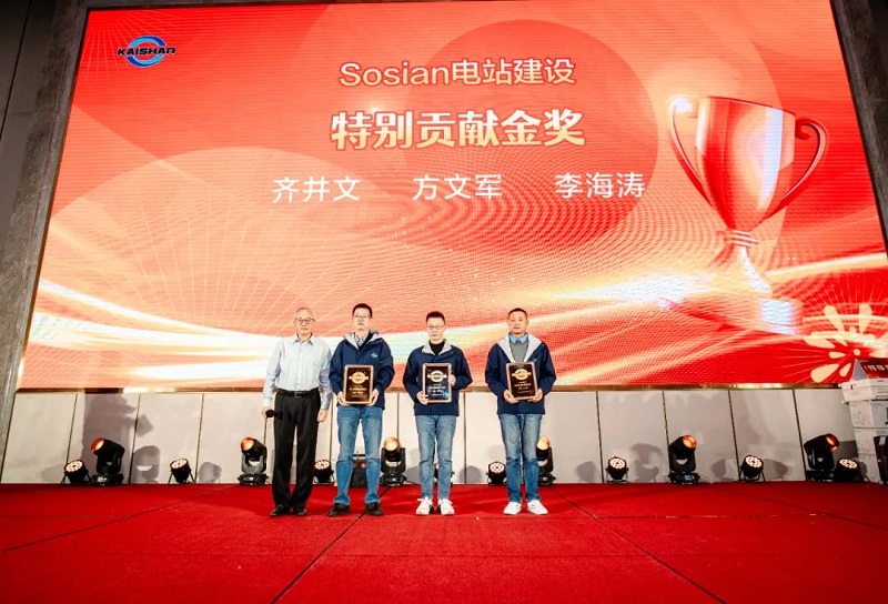 團拜會上,控股集團公司頒發(fā)了2024年度特別貢獻獎,表彰在過去一年為公司轉型升級和持續(xù)發(fā)展做出突出貢獻的團隊成員。SMGP電廠建設團隊、Sosian電站建設團隊、841/844大型無油螺桿主機工藝攻關團隊榮獲年度特別貢獻獎??偨?jīng)理湯炎博士向獲獎團隊成員頒發(fā)了金質和銀質獎牌。