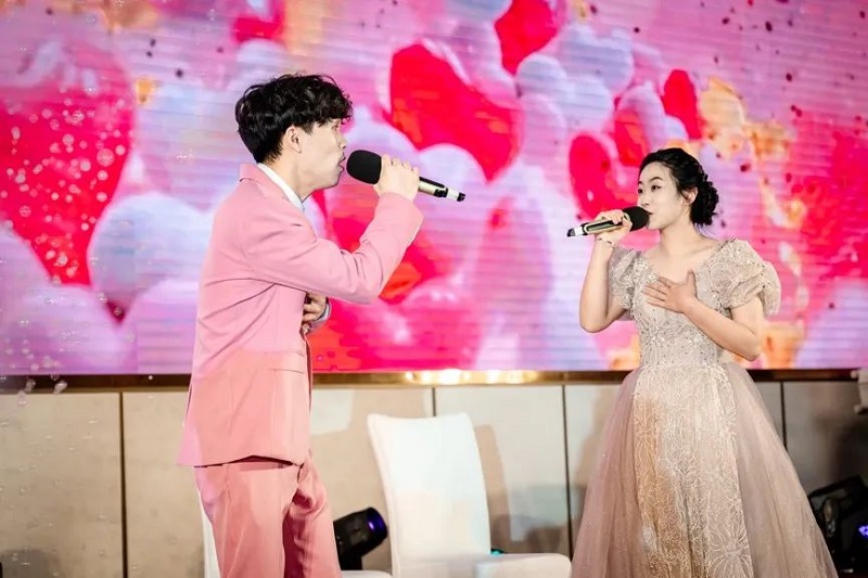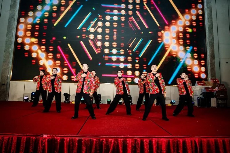 團拜會由開山聯(lián)合公司徐濤主唱的開場秀拉開帷幕,絢麗的舞臺背景和熾烈的鼓樂聲讓現(xiàn)場充滿了歡樂祥和的喜慶氣氛。