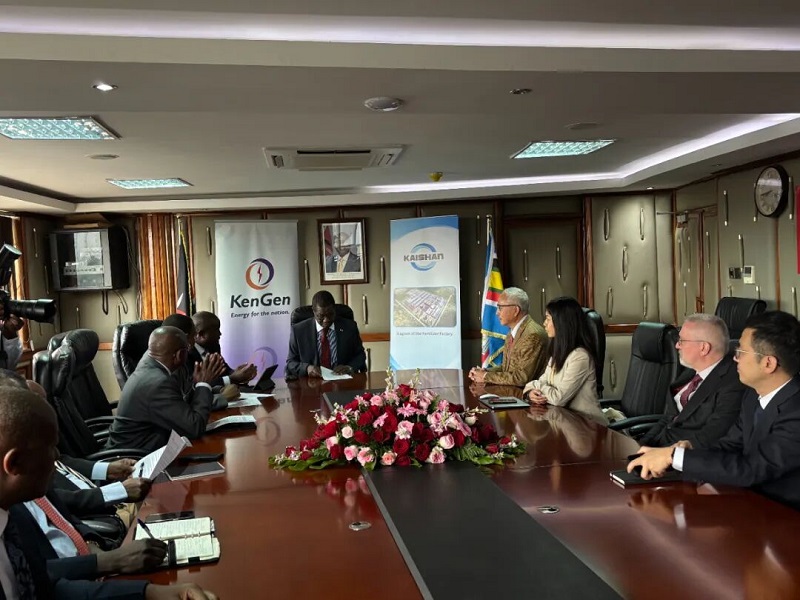 10月27日上午9時(shí),肯尼亞共和國(guó)能源部。開(kāi)山集團(tuán)股份有限公司董事總經(jīng)理湯炎博士與KenGen總經(jīng)理兼CEO Eng,Peter Njenga分別代表各自公司簽署了《蒸汽供應(yīng)協(xié)議》??夏醽喒埠蛧?guó)能源部長(zhǎng)Hon,J.Opiyo Wandayi,EGH出席了簽字儀式。