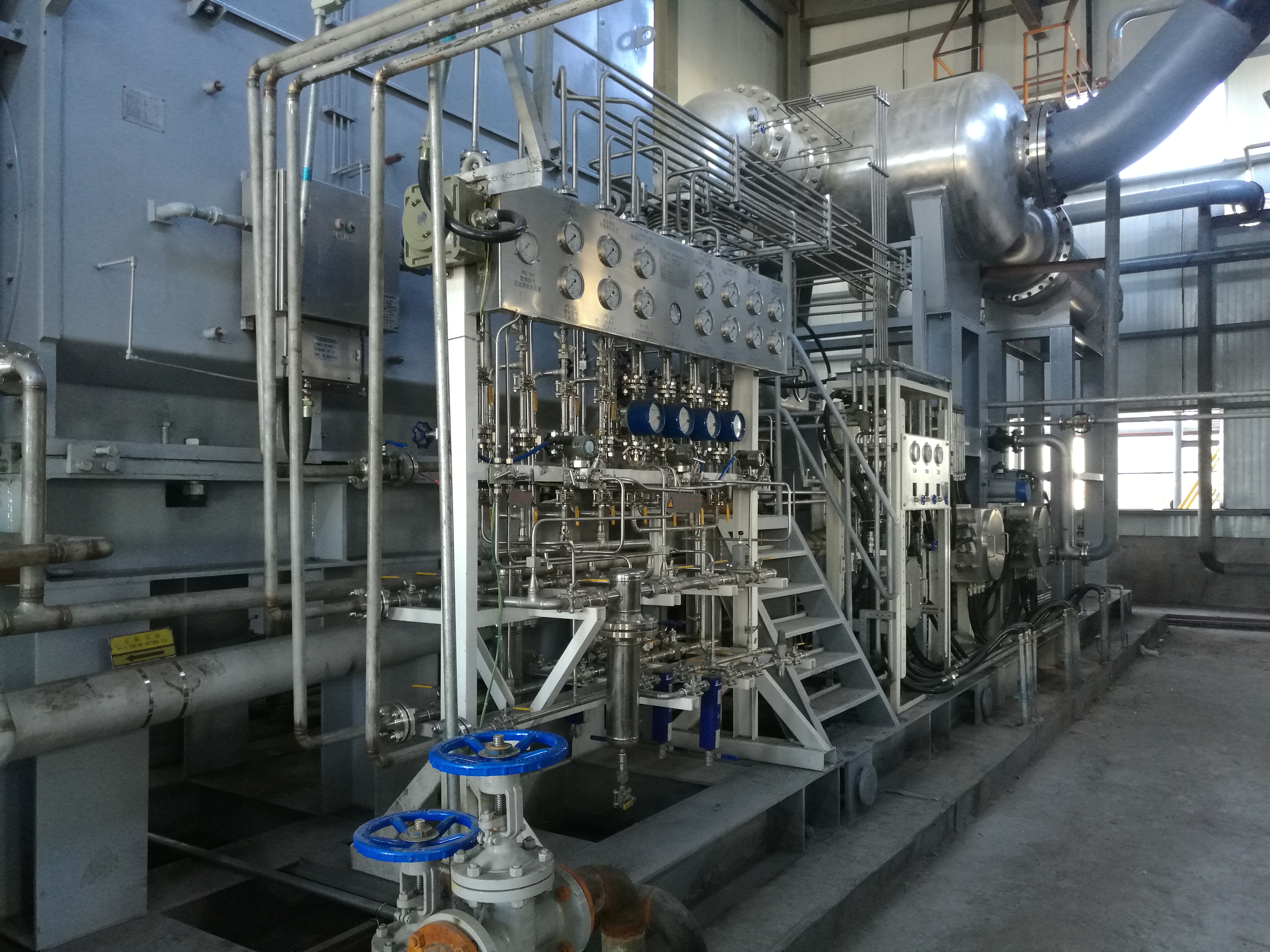 以最典型的煤化工和鋼鐵尾氣初級焦爐煤氣增壓為例,噴水螺桿壓縮機耐焦油、萘等特點,成為該工藝段首選設(shè)備,由于國內(nèi)工藝螺桿壓縮機制造商受型線技術(shù)及設(shè)計能力限制,單級排氣壓力只能達到0.7MPaG,雙級達到1.0MPaG。開山利用自身型線技術(shù)及設(shè)計制造優(yōu)勢,將單級壓縮排氣壓力提升至1.0MPaG(壓比>11,容積流量280m3/min),雙級壓縮排氣壓力提升至1.65MPaG,(壓比>17.5,容積流量766m3/min),已在多個項目成功應(yīng)用,連續(xù)穩(wěn)定運行時間超過4年。根據(jù)目前開山的技術(shù)儲備,且經(jīng)過廠內(nèi)反復(fù)試驗驗證,該類壓縮機全譜系單級壓縮排氣壓力可至1.6MPaG,雙級壓縮排氣壓力至2.5MPaG。排氣壓力的提升可以提高后段提純工藝的操作壓力,大大縮小提純設(shè)備的體積,對于降低全流程設(shè)備投資,提高氣體處理純度有著顯著的效果。